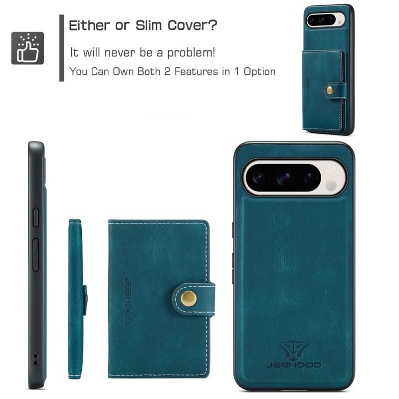 For Google Pixel 9 Pro JEEHOOD J01 Retro Magnetic Detachable Wallet Phone Case(Blue) (JEEHOOD)