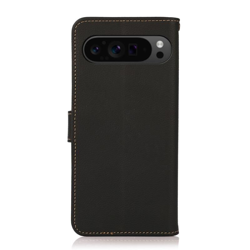 Θήκη τηλεφώνου από γνήσιο δέρμα KHAZNEH Custer για Google Pixel 9 Pro με προστασία RFID (Μαύρο)