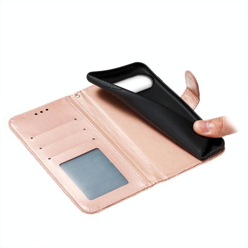 8. Σχεδιασμός με ανάγλυφο λουλούδι δαντέλας, Η θήκη είναι κατασκευασμένη από προσεκτικά επιλεγμένο δέρμα που της δίνει μια εκλεπτυσμένη και πολυτελή εμφάνιση και αίσθηση.