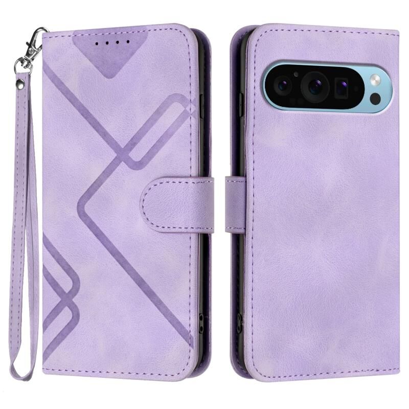 For Google Pixel 9 Pro Line Pattern Skin Feel Leather Phone Case(Light Purple)
