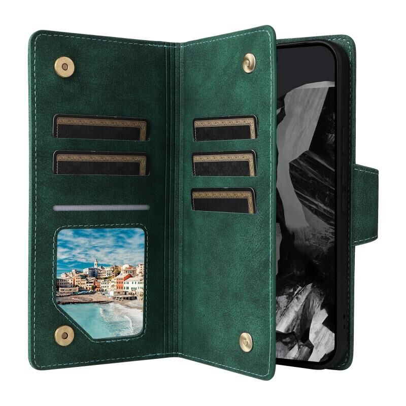 For Google Pixel 9 Pro Rivet Buckle 9 Cards Three Fold Leather Phone Case(Green)