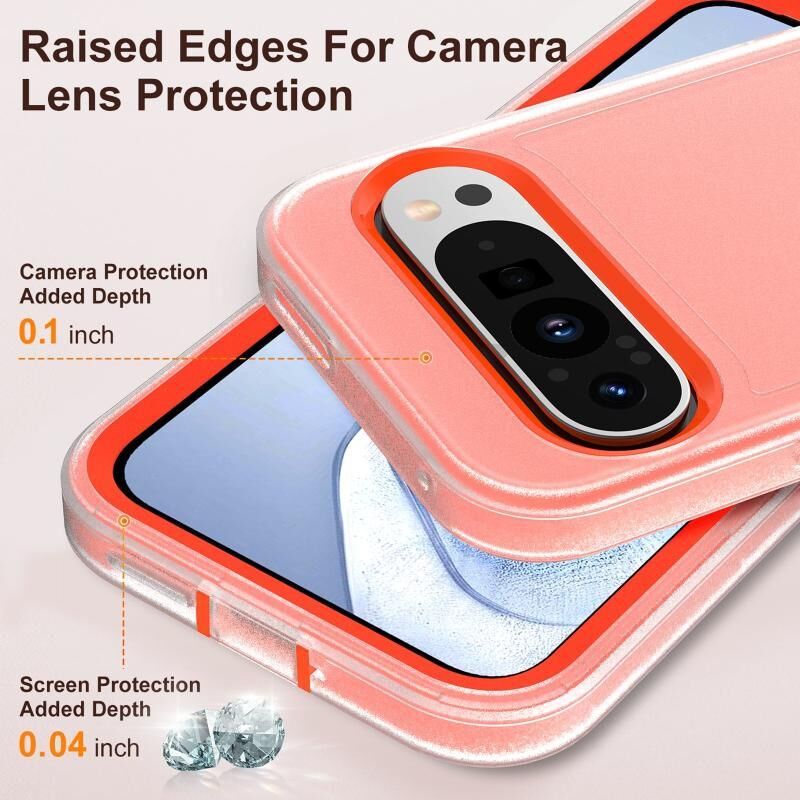 Για το Google Pixel 9 Pro Ανθεκτική θήκη τηλεφώνου PC + σιλικόνης με θήκη (Διαφανές + πορτοκαλί)