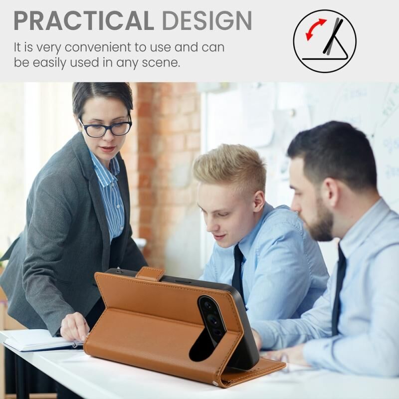 Για το Google Pixel 9 Pro Side Buckle μαγνητική παγωμένη δερμάτινη θήκη τηλεφώνου (καφέ)