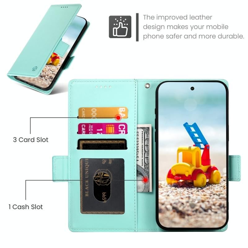 Για το Google Pixel 9 Pro Side Buckle μαγνητική παγωμένο δέρμα τηλέφωνο υπόθεση (πράσινο μέντα)