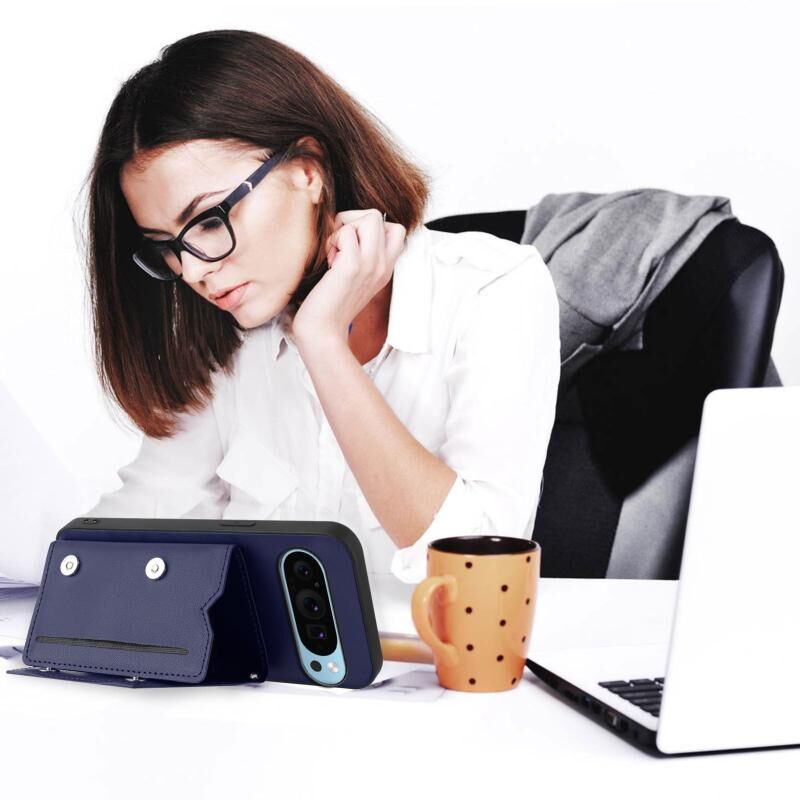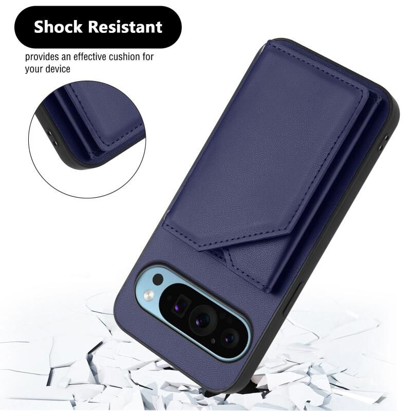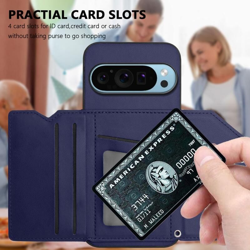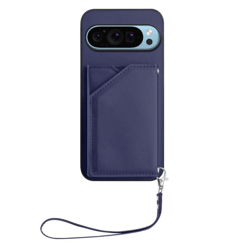 Για το Google Pixel 9 Pro Skin Feel Τέσσερις υποδοχές καρτών υπόθεση τηλεφώνου με λουράκι καρπού (μπλε)