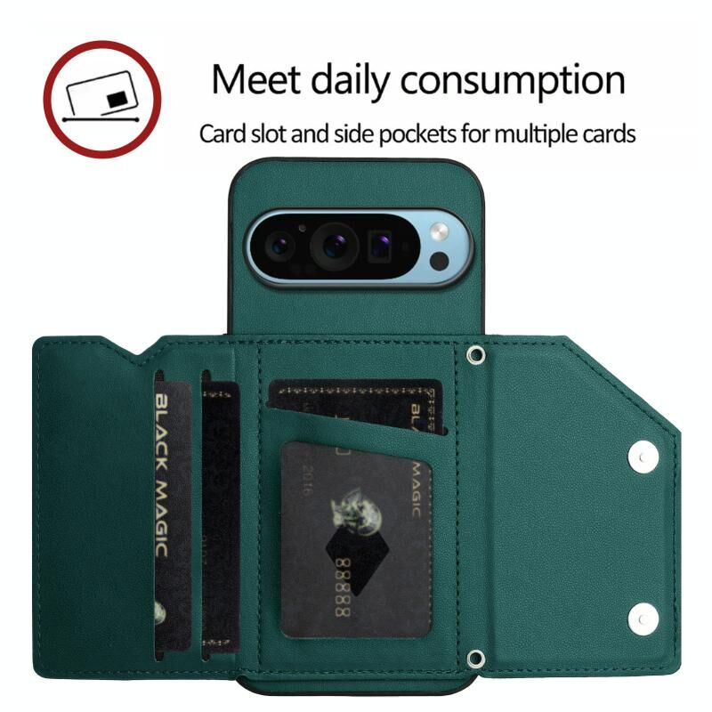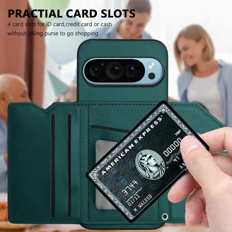 Για το Google Pixel 9 Pro Skin Feel Τέσσερις υποδοχές καρτών υπόθεση τηλεφώνου με λουράκι καρπού (πράσινο)