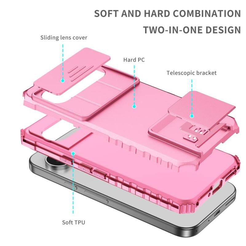 Για Google Pixel 9 Pro Στερεοσκοπική θήκη τηλεφώνου με συρόμενη θήκη Camshield (ροζ)