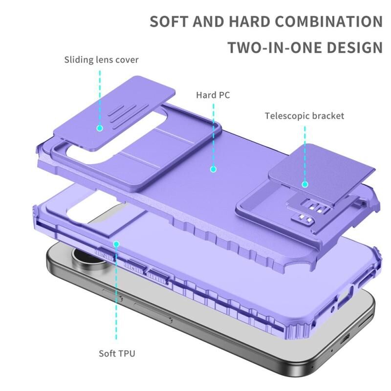 Για Google Pixel 9 Pro Στερεοσκοπική θήκη τηλεφώνου με συρόμενη θήκη Camshield (μωβ)