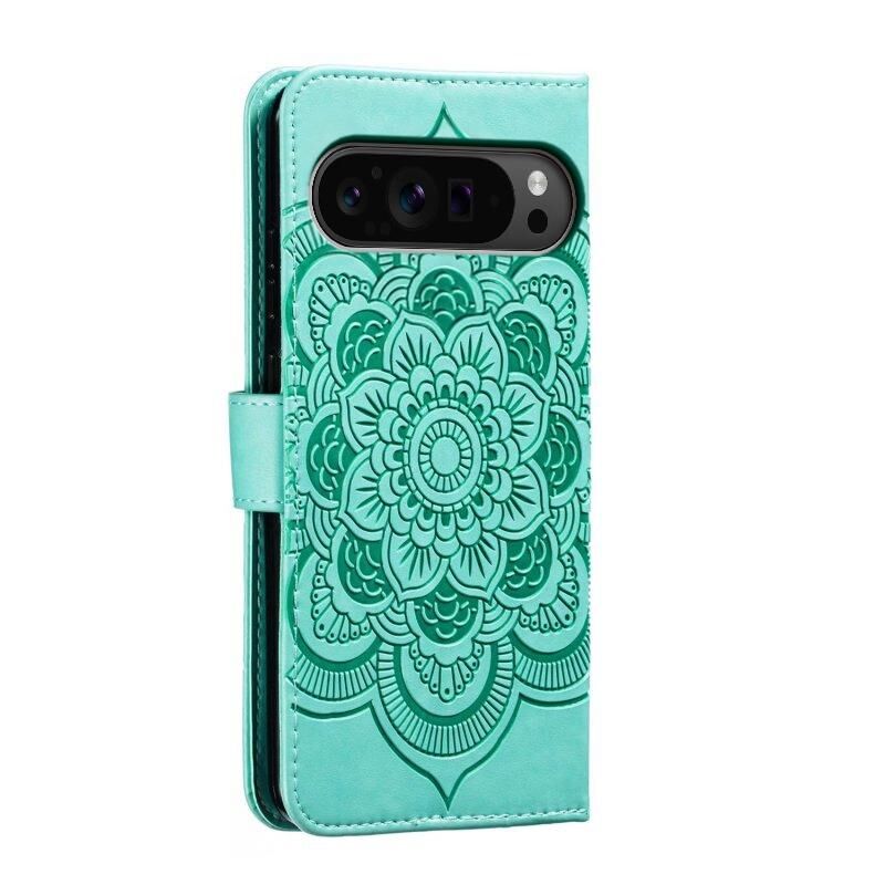 Για το Google Pixel 9 Pro Sun Mandala ανάγλυφο μοτίβο τηλέφωνο δερμάτινη θήκη (πράσινο)