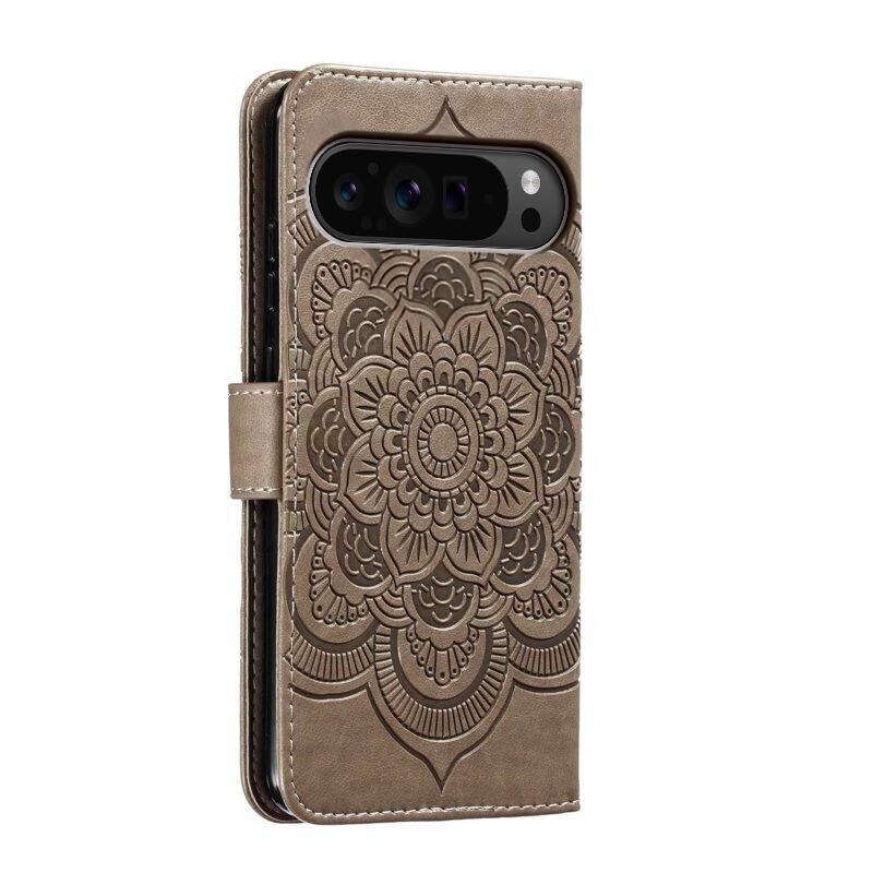 Για το Google Pixel 9 Pro Sun Mandala ανάγλυφο μοτίβο τηλέφωνο δερμάτινη θήκη (γκρι)