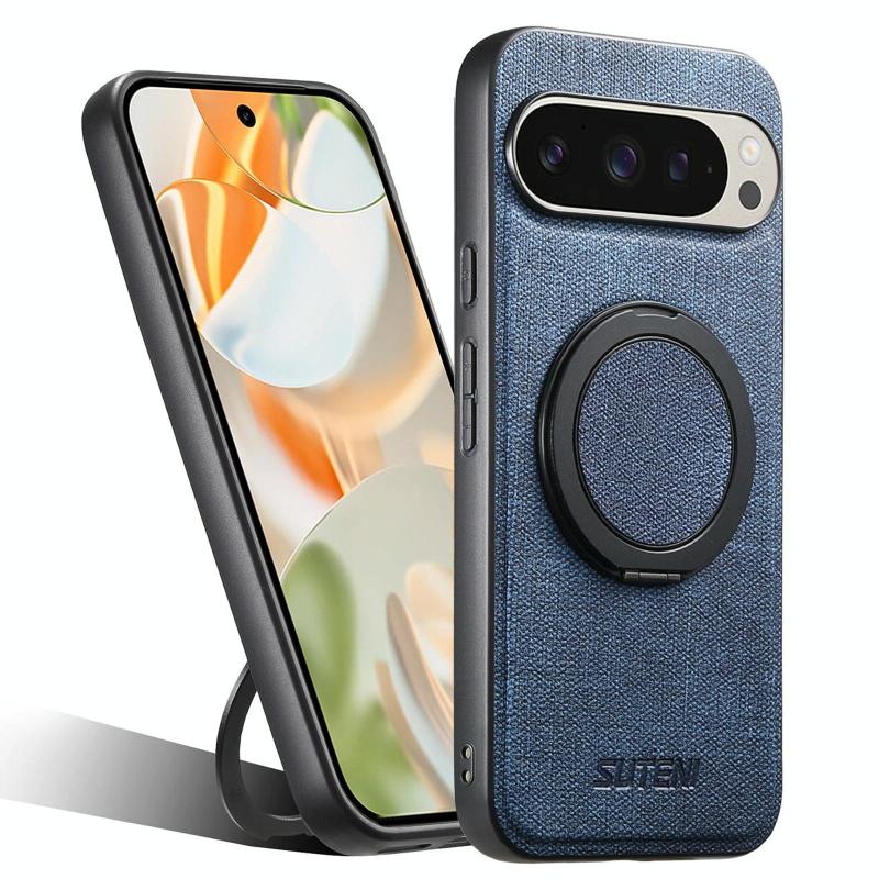For Google Pixel 9 Pro Suteni G3 360 Rotation Holder MagSafe Denim Leather Back Phone Case(Blue) (Suteni)