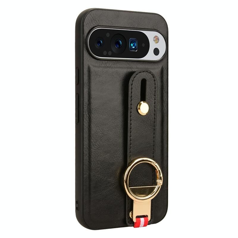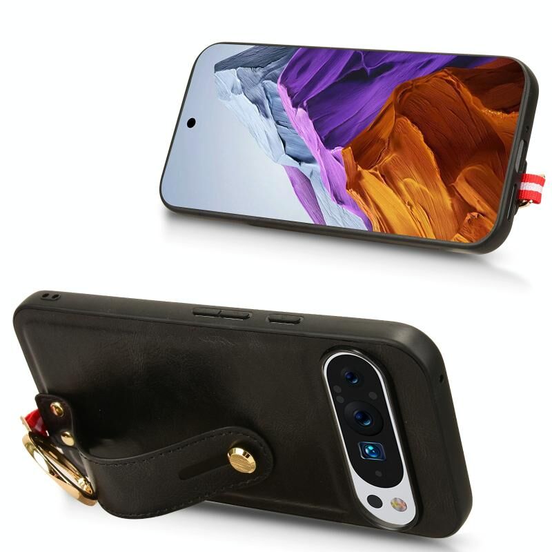 Για το Google Pixel 9 Pro Wristband δέρμα πίσω θήκη τηλεφώνου (Μαύρο)