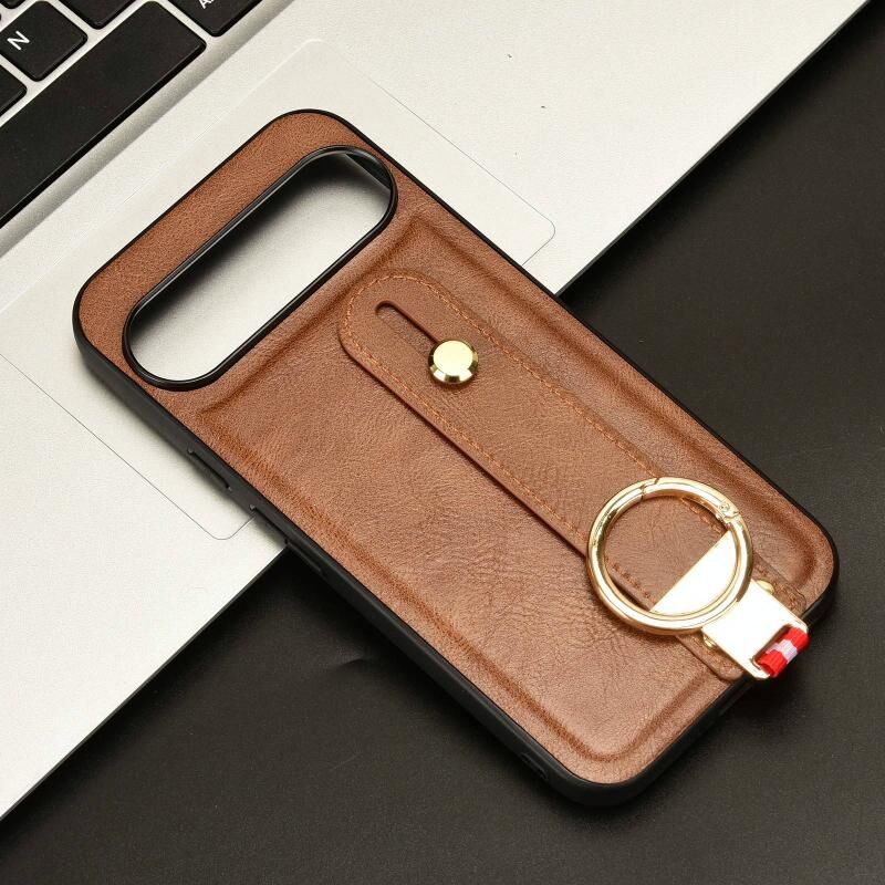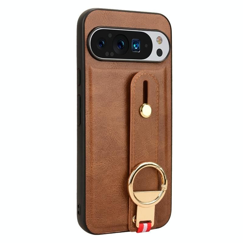 Για Google Pixel 9 Pro Wristband δέρμα πίσω θήκη τηλεφώνου (καφέ)