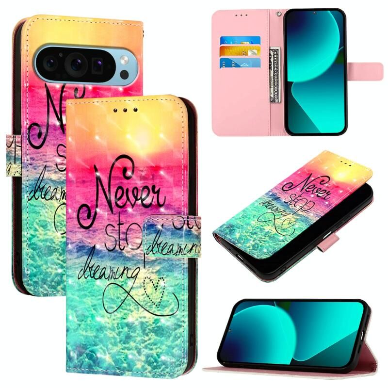 Θήκη τηλεφώνου από δέρμα με οριζόντιο άνοιγμα και τρισδιάστατη ζωγραφική για Google Pixel 9 Pro XL (Κυνηγώντας Όνειρα)