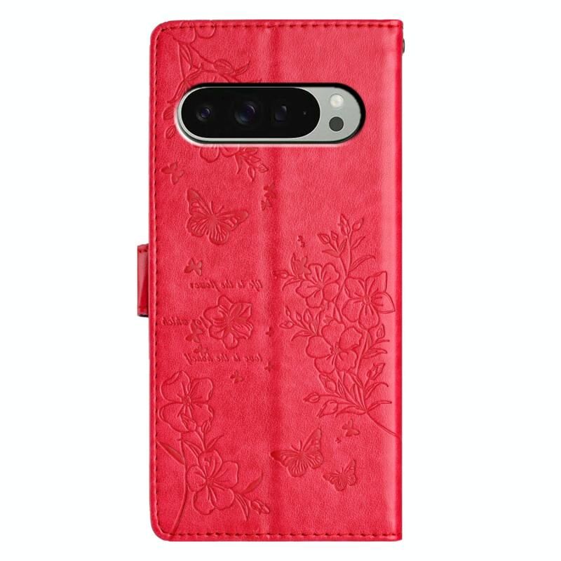 Θήκη τηλεφώνου από δέρμα για Google Pixel 9 Pro XL Πεταλούδες και Λουλούδια (Χρυσό)