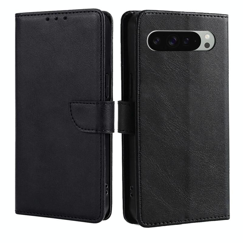 Για το Google Pixel 9 Pro XL Calf Texture Buckle Flip δέρμα τηλέφωνο υπόθεση (Μαύρο)