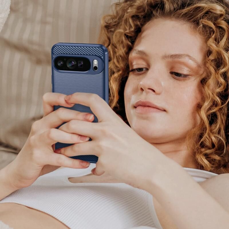 Θήκη τηλεφώνου TPU με υφή ανθρακονημάτων βουρτσισμένου για Google Pixel 9 Pro XL (Μαύρο)