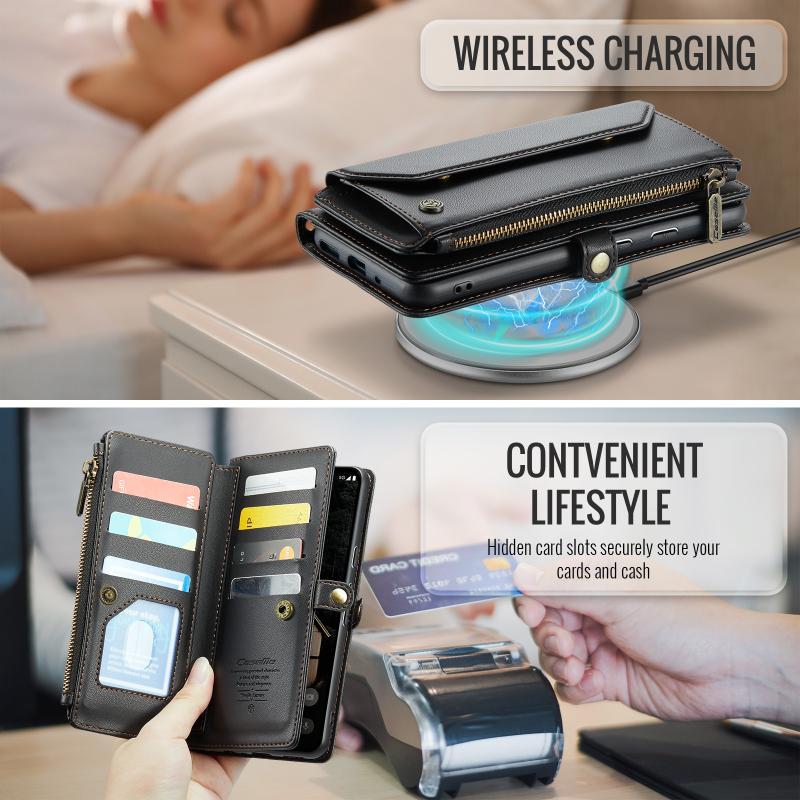 For Google Pixel 9 Pro XL CaseMe C36 Card Slots Zipper Wallet RFID Anti-theft Leather Phone Case(Black) (CaseMe)