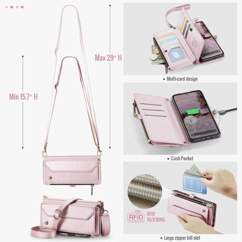 For Google Pixel 9 Pro XL CaseMe C36 Card Slots Zipper Wallet RFID Anti-theft Leather Phone Case(Pink) (CaseMe)