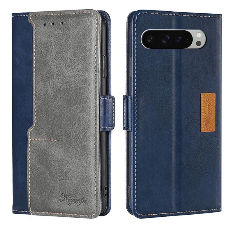 Για το Google Pixel 9 Pro XL Αντίθετο χρώμα πλευρά πόρπη δερμάτινη θήκη τηλεφώνου (μπλε + γκρι)