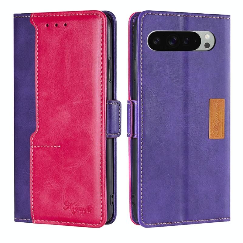Για το Google Pixel 9 Pro XL Αντίθετο χρώμα πλευρά πόρπη δερμάτινη θήκη τηλεφώνου (μωβ + Rose Red)