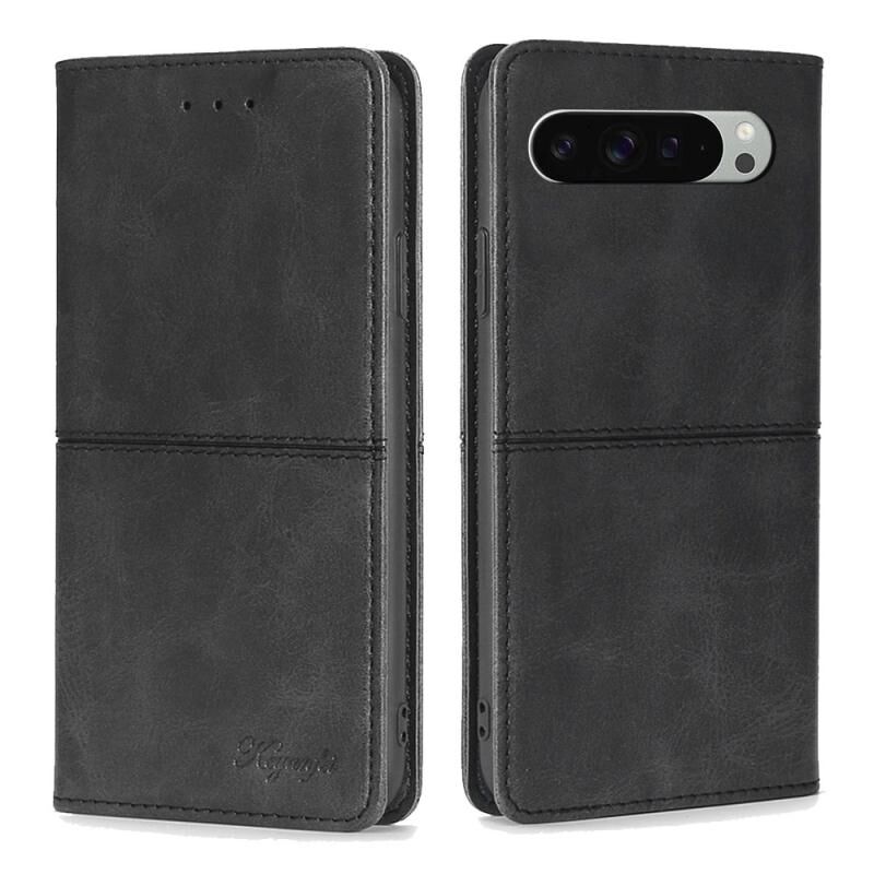 Για το Google Pixel 9 Pro XL Θήκη τηλεφώνου με μαγνητικό δέρμα αγελάδας (Μαύρο)