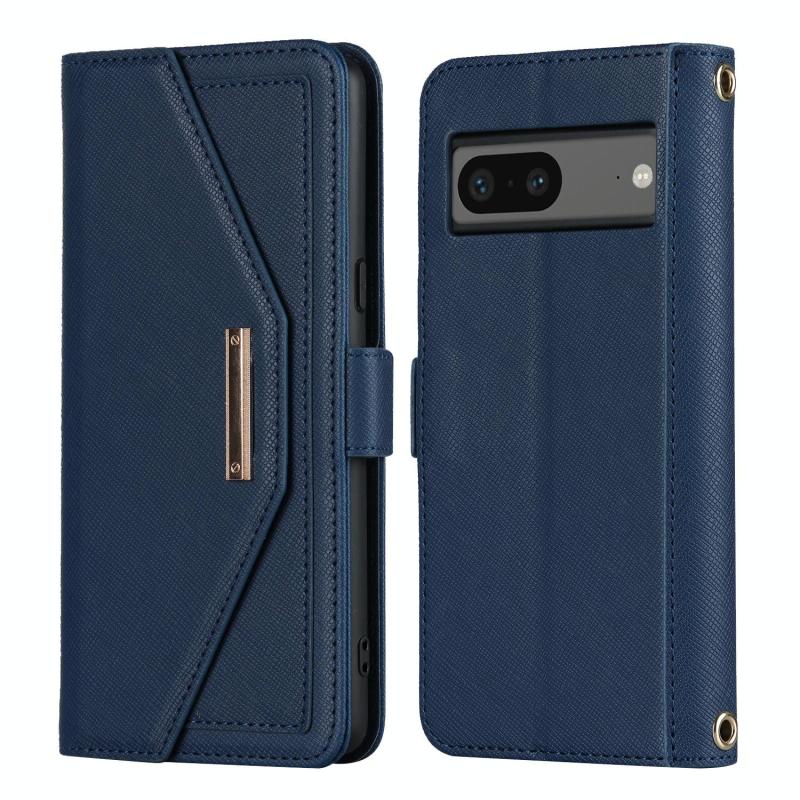 For Google Pixel 9 Pro XL Cross Texture Crossbody Lanyard Leather Phone Case(Blue)
