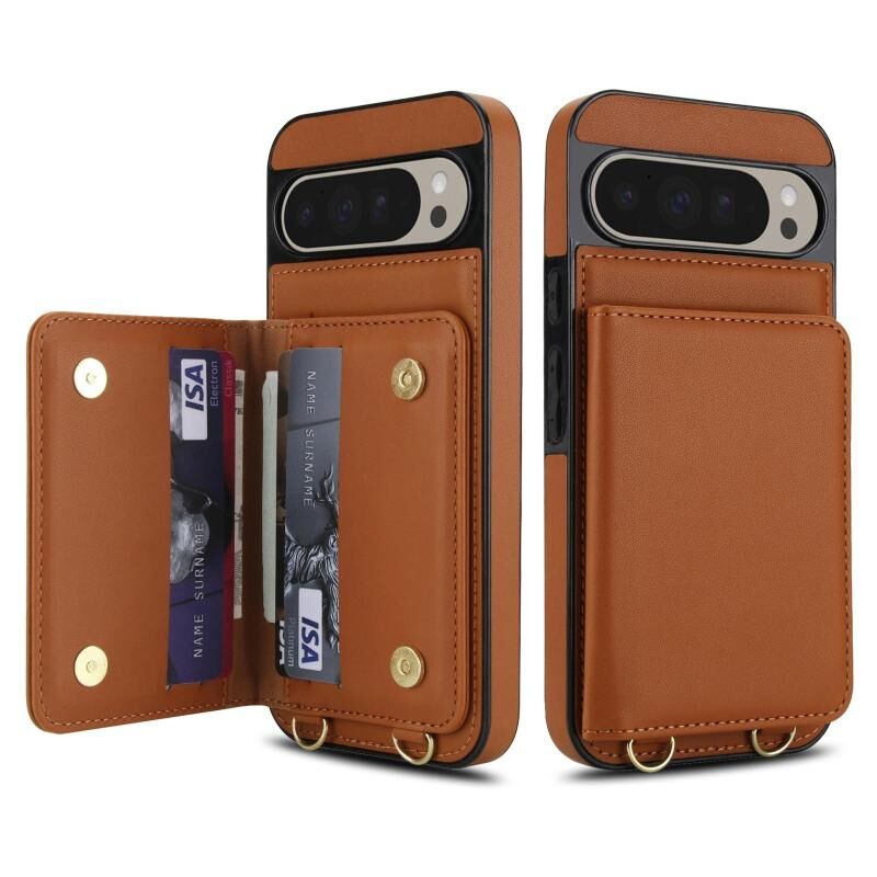 For Google Pixel 9 Pro XL Crossbody Dual-buckle Wallet RFID Back Leather Phone Case(Brown)