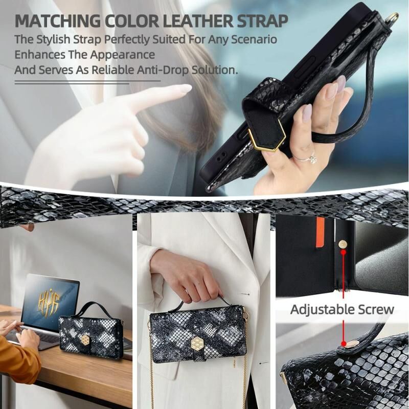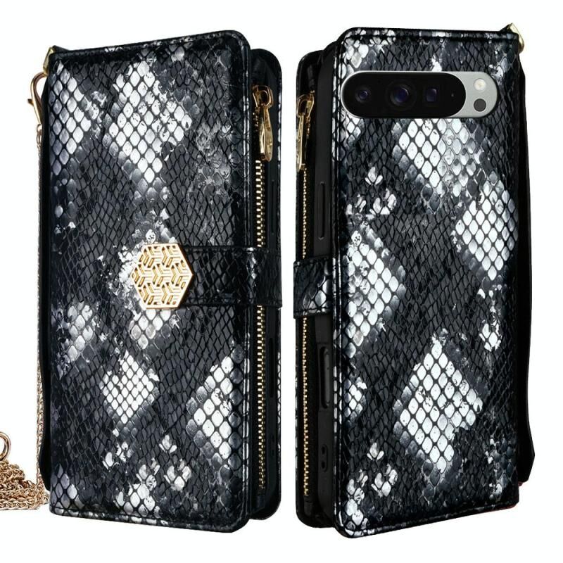 For Google Pixel 9 Pro XL Crossbody Handle Snake Texture Leather Phone Case(Black)