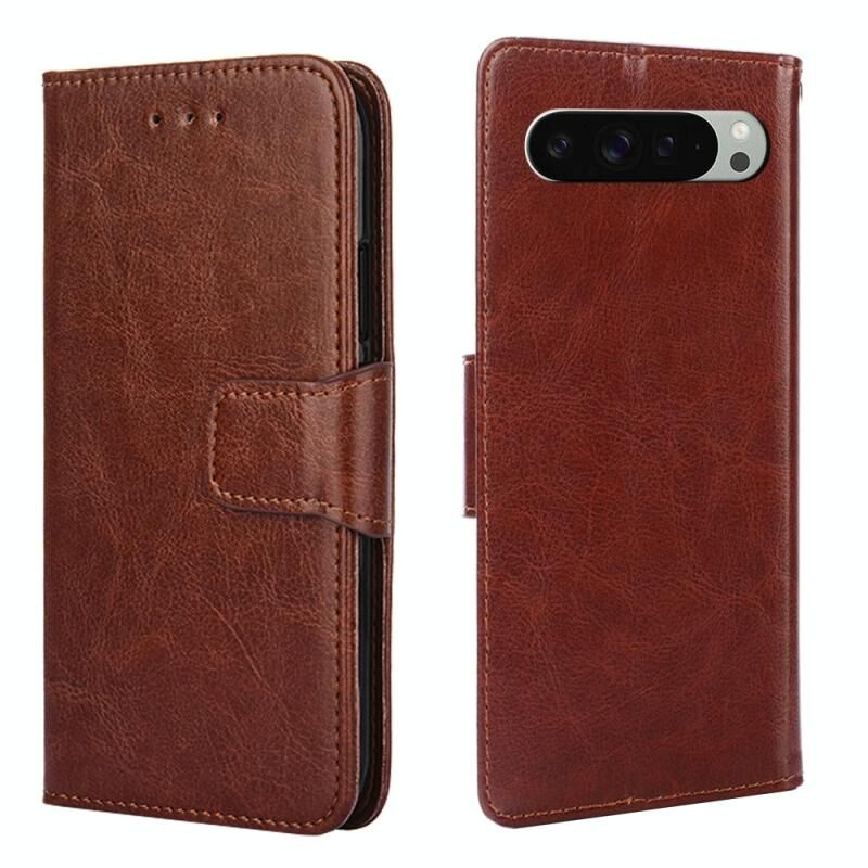 Για το Google Pixel 9 Pro XL Crystal Texture Δερμάτινη θήκη τηλεφώνου (καφέ)