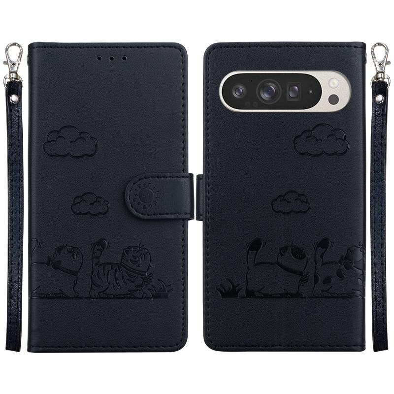 Θήκη τηλεφώνου από δέρμα με χαριτωμένες γάτες και προστασία RFID για Google Pixel 9 Pro XL (Χρυσό ροζ)