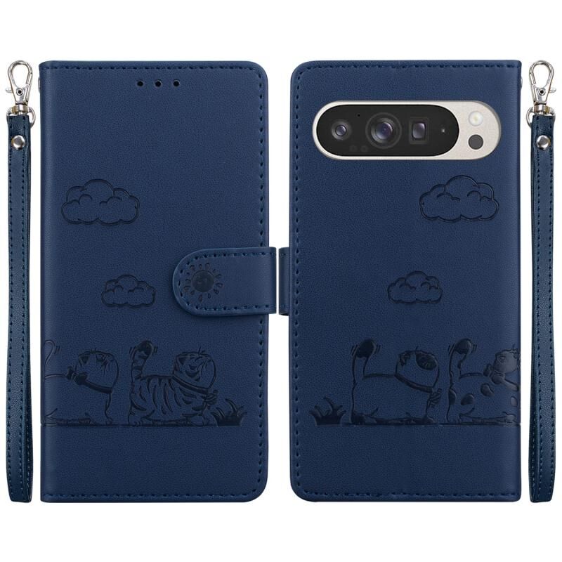 For Google Pixel 9 Pro XL Cute Cats RFID Leather Phone Case(Blue)