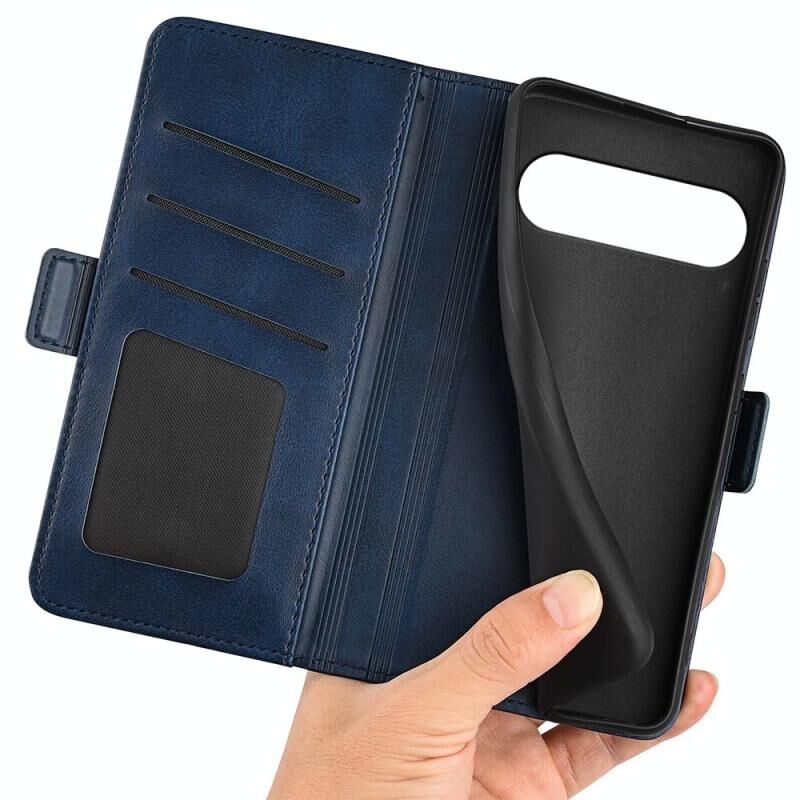 Για το Google Pixel 9 Pro XL διπλής όψης μαγνητική πόρπη οριζόντια Flip δέρμα τηλέφωνο υπόθεση (σκούρο μπλε)