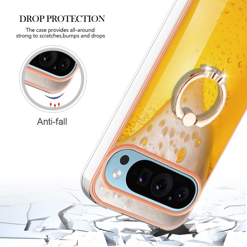Θήκη τηλεφώνου για Google Pixel 9 Pro XL με ηλεκτρολυτική επιμετάλλωση, διπλής όψης IMD με δακτύλιο στήριξης (Σχέδιο Μπύρας)