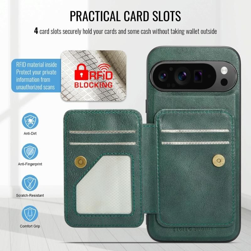 For Google Pixel 9 Pro XL Fierre Shann Cowhide Horizontal Flip Magnetic Card Holder Phone Case(Green) (FIERRE SHANN)