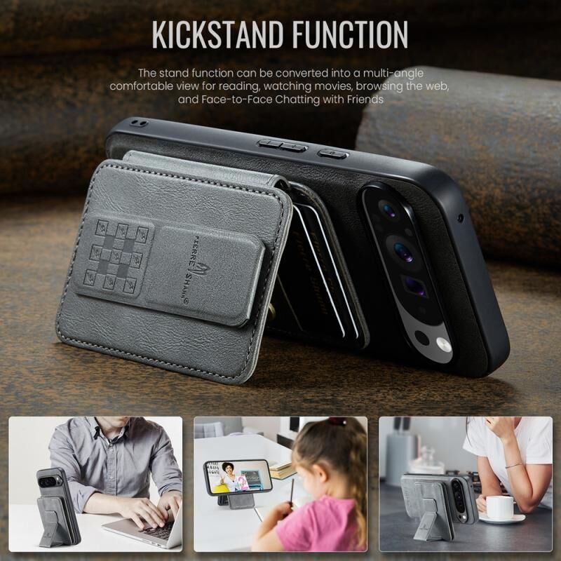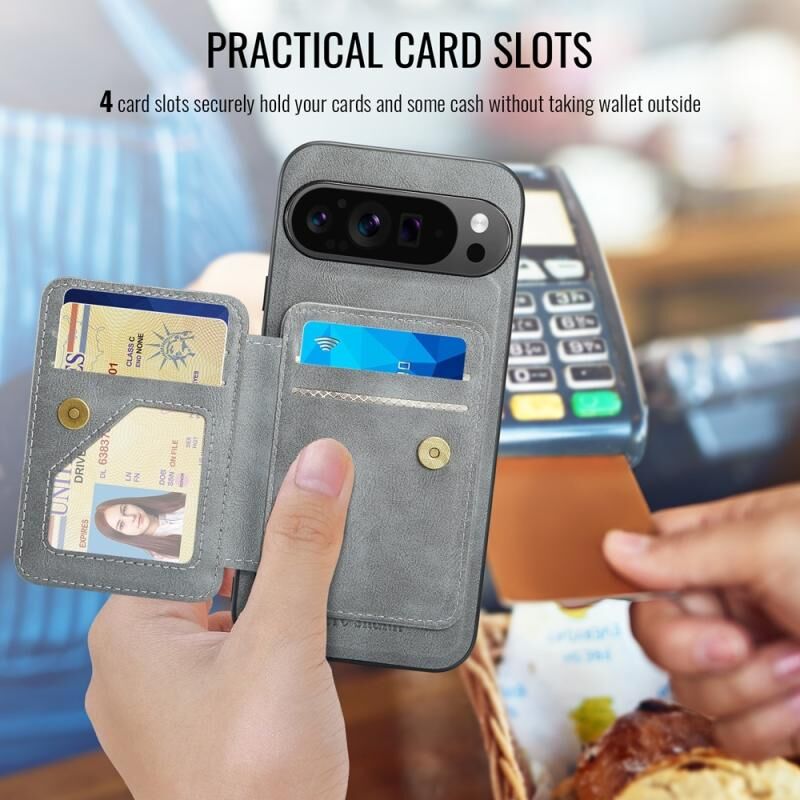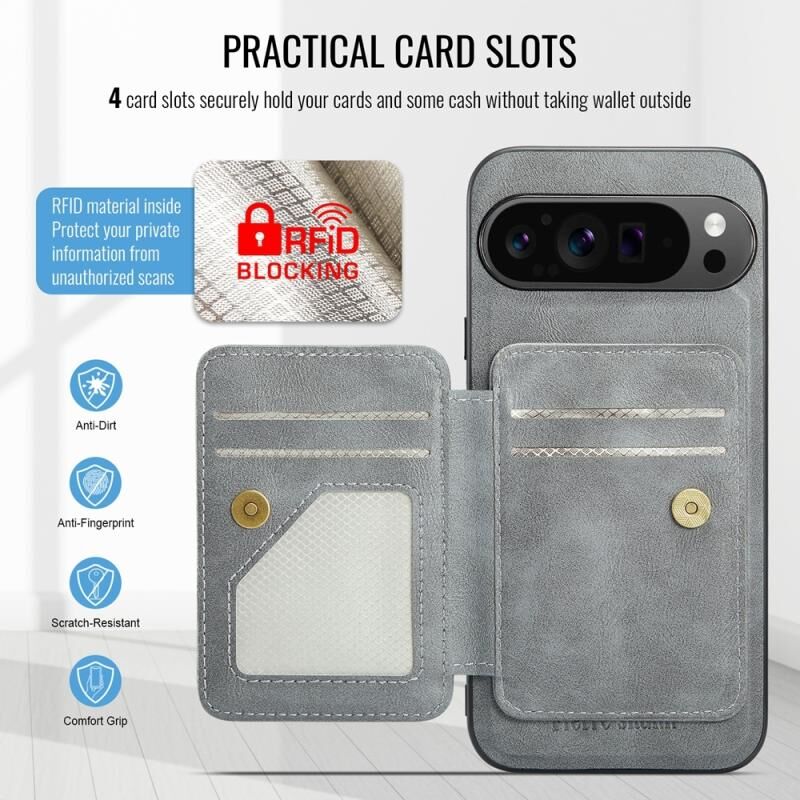 For Google Pixel 9 Pro XL Fierre Shann Cowhide Horizontal Flip Magnetic Card Holder Phone Case(Grey) (FIERRE SHANN)
