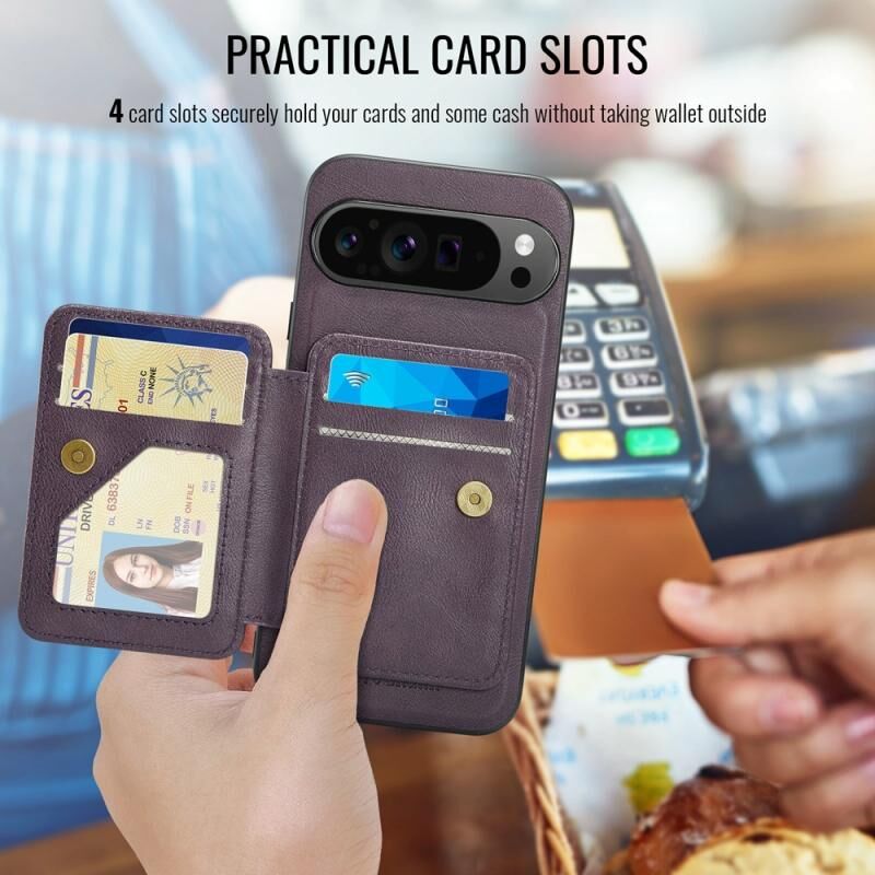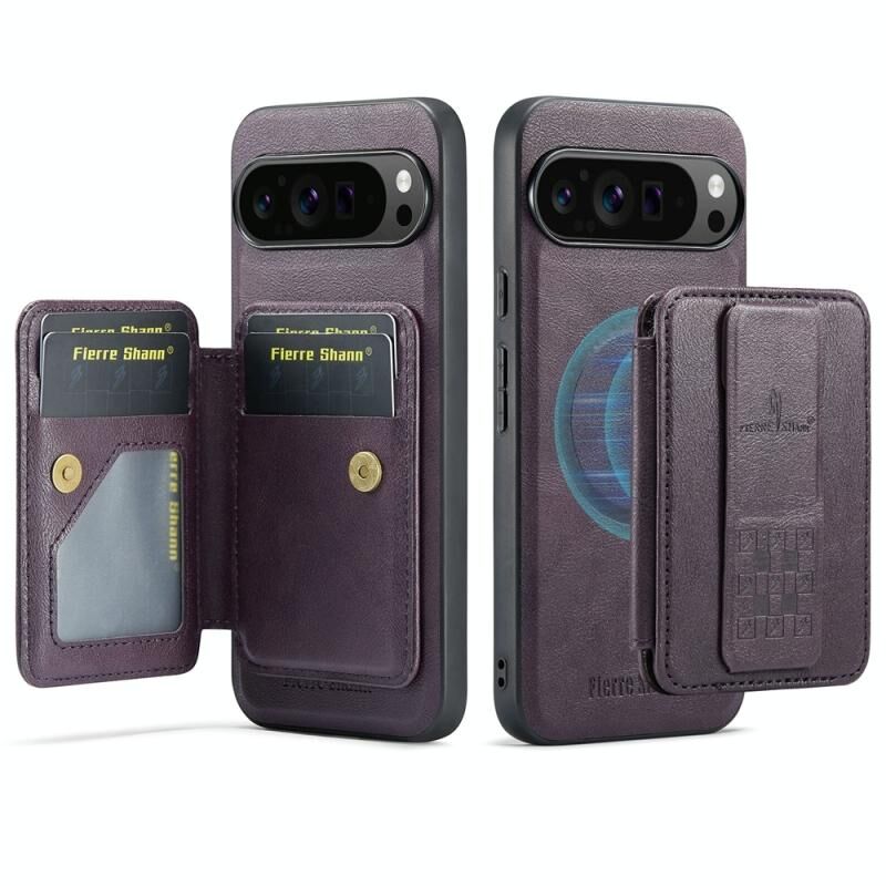 For Google Pixel 9 Pro XL Fierre Shann Cowhide Horizontal Flip Magnetic Card Holder Phone Case(Purple) (FIERRE SHANN)