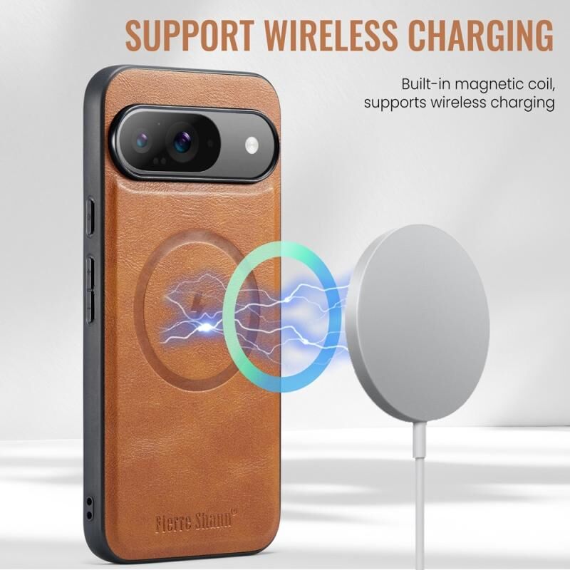 For Google Pixel 9 Pro XL Fierre Shann Cowhide Texture MagSafe Magnetic Phone Case(Brown) (FIERRE SHANN)
