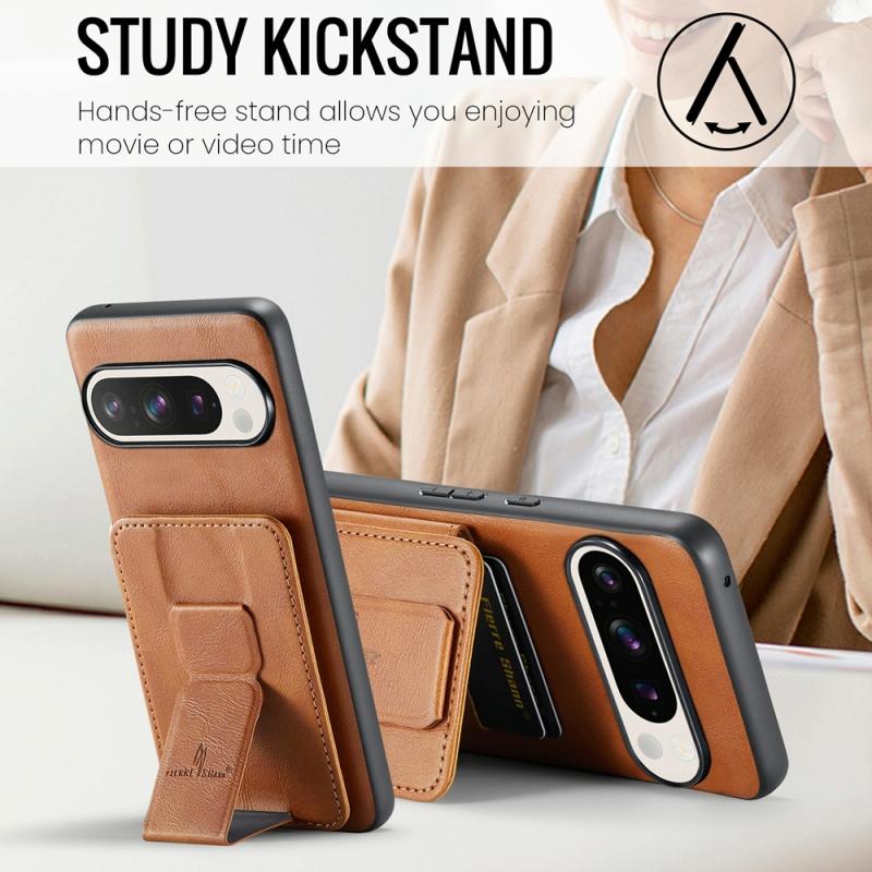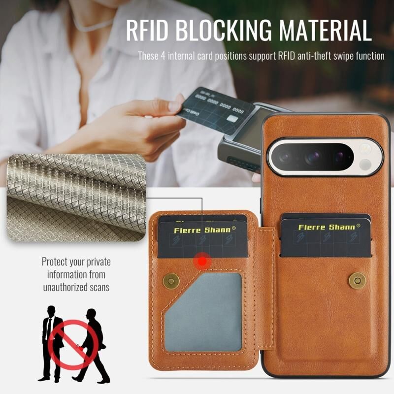 For Google Pixel 9 Pro XL Fierre Shann Oil Wax Cow Leather Card Holder Back Phone Case(Brown) (FIERRE SHANN)