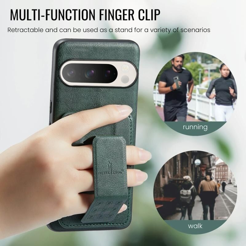 For Google Pixel 9 Pro XL Fierre Shann Oil Wax Cow Leather Card Holder Back Phone Case(Green) (FIERRE SHANN)