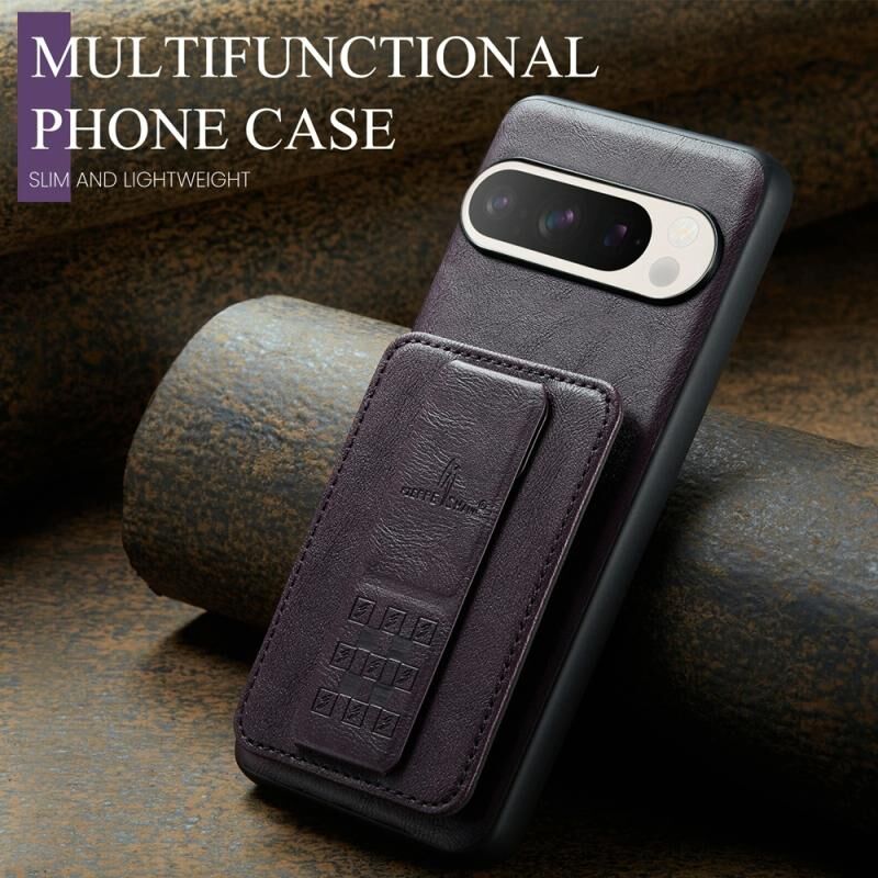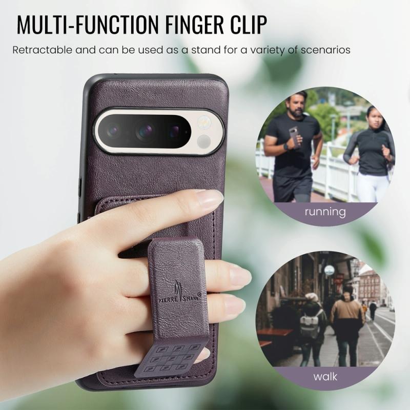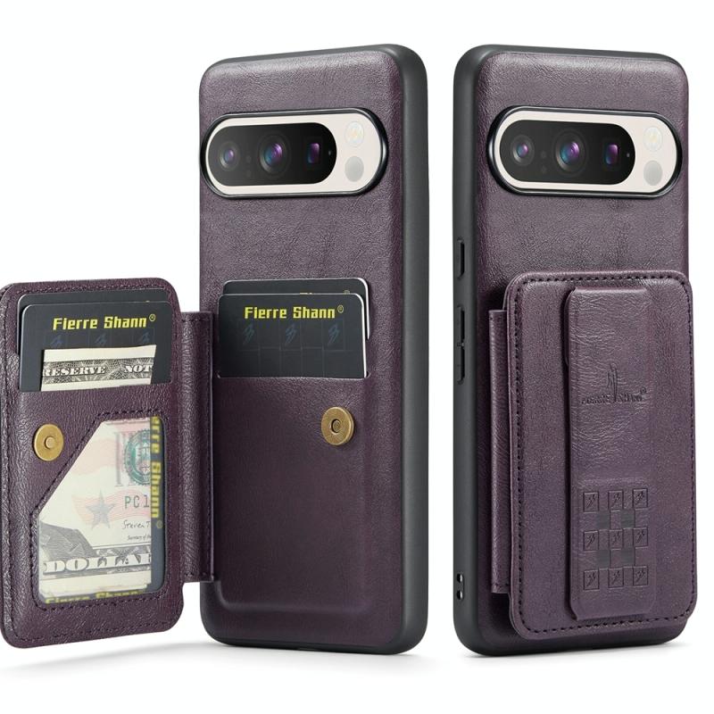 For Google Pixel 9 Pro XL Fierre Shann Oil Wax Cow Leather Card Holder Back Phone Case(Purple) (FIERRE SHANN)