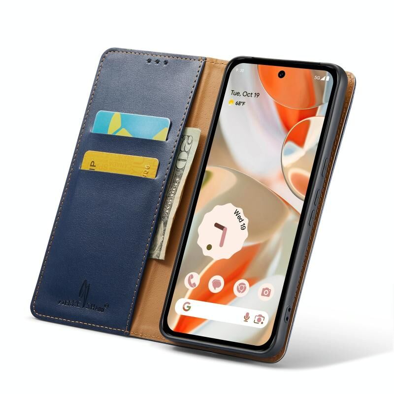 For Google Pixel 9 Pro XL Fierre Shann PU Genuine Leather Texture Phone Case(Blue) (FIERRE SHANN)