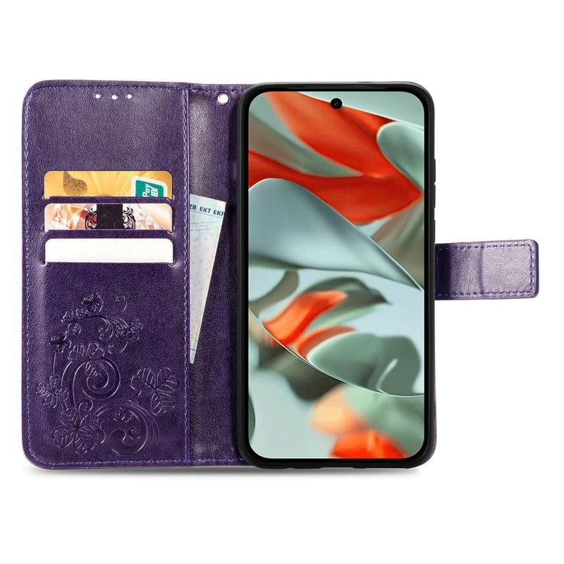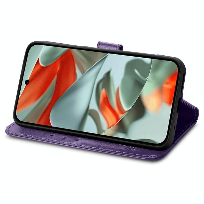 Για το Google Pixel 9 Pro XL τετράφυλλο κούμπωμα ανάγλυφη δερμάτινη θήκη τηλεφώνου (μωβ)