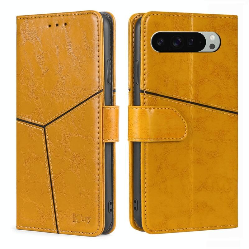 Για το Google Pixel 9 Pro XL Γεωμετρική ραφή δερμάτινη θήκη τηλεφώνου (κίτρινο)