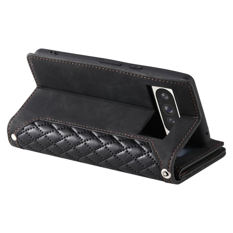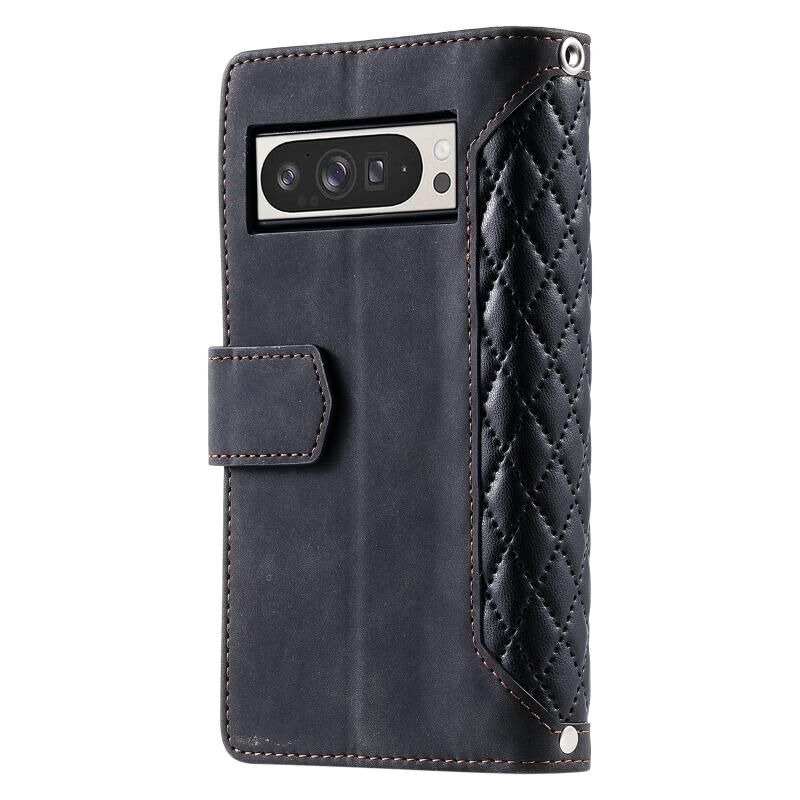 Θήκη τηλεφώνου από δέρμα με υφή δικτύου και φερμουάρ για Google Pixel 9 Pro XL με κορδόνι (Μπλε)