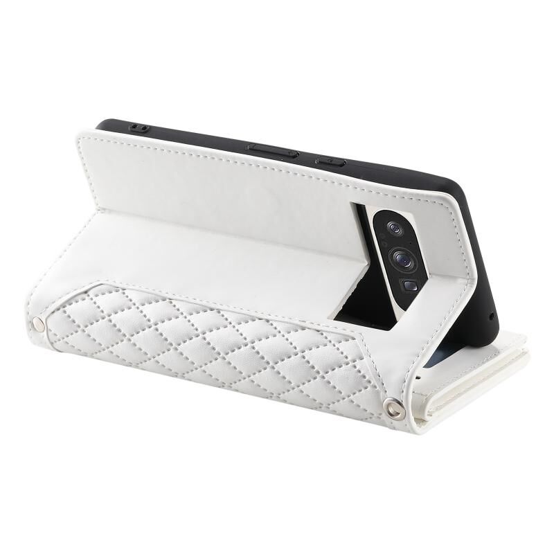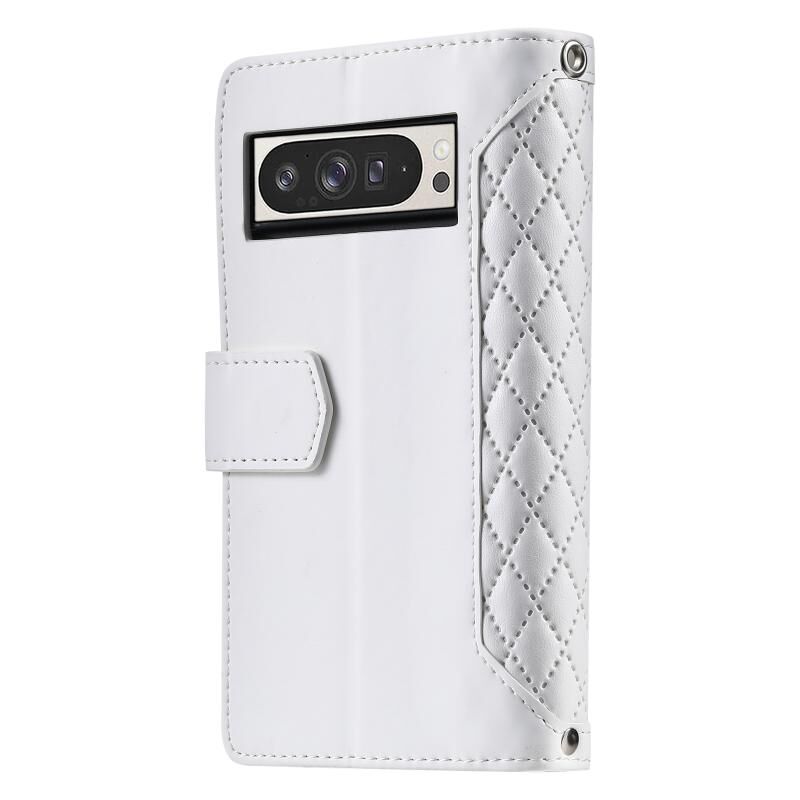 Θήκη τηλεφώνου από δέρμα με υφή δικτύου και φερμουάρ για Google Pixel 9 Pro XL με κορδόνι (Μπλε)