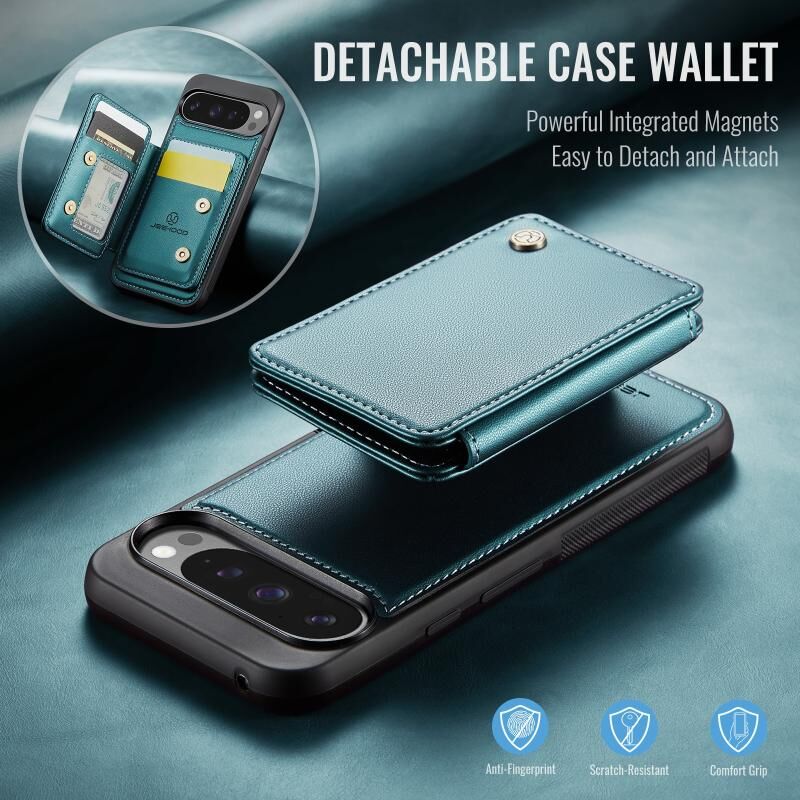 For Google Pixel 9 Pro XL JEEHOOD J05 Business Magnetic Style RFID Leather Phone Case(Blue Green) (JEEHOOD)
