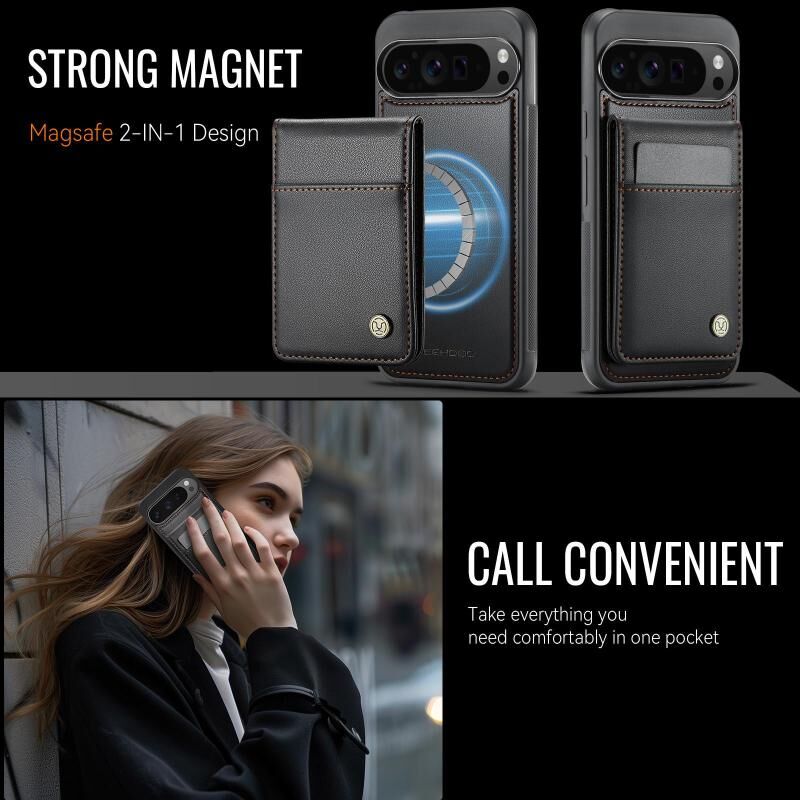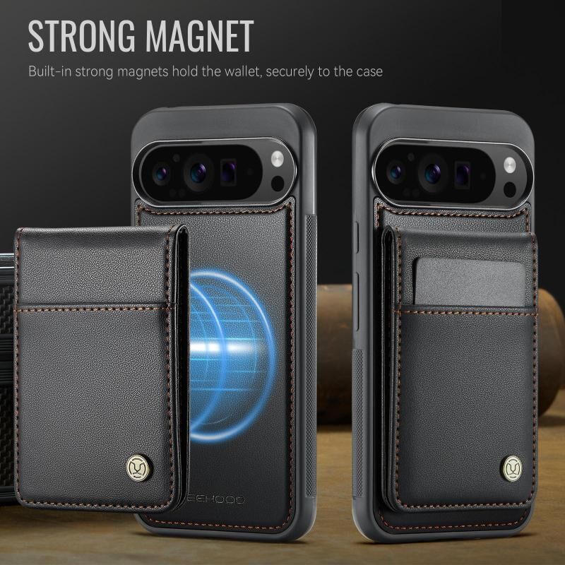 For Google Pixel 9 Pro XL JEEHOOD J06 British Style RFID MagSafe Card Bag PU Phone Case(Black) (JEEHOOD)