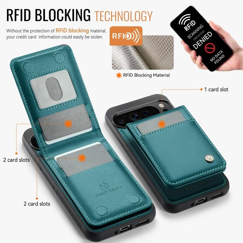 For Google Pixel 9 Pro XL JEEHOOD J06 British Style RFID MagSafe Card Bag PU Phone Case(Green) (JEEHOOD)