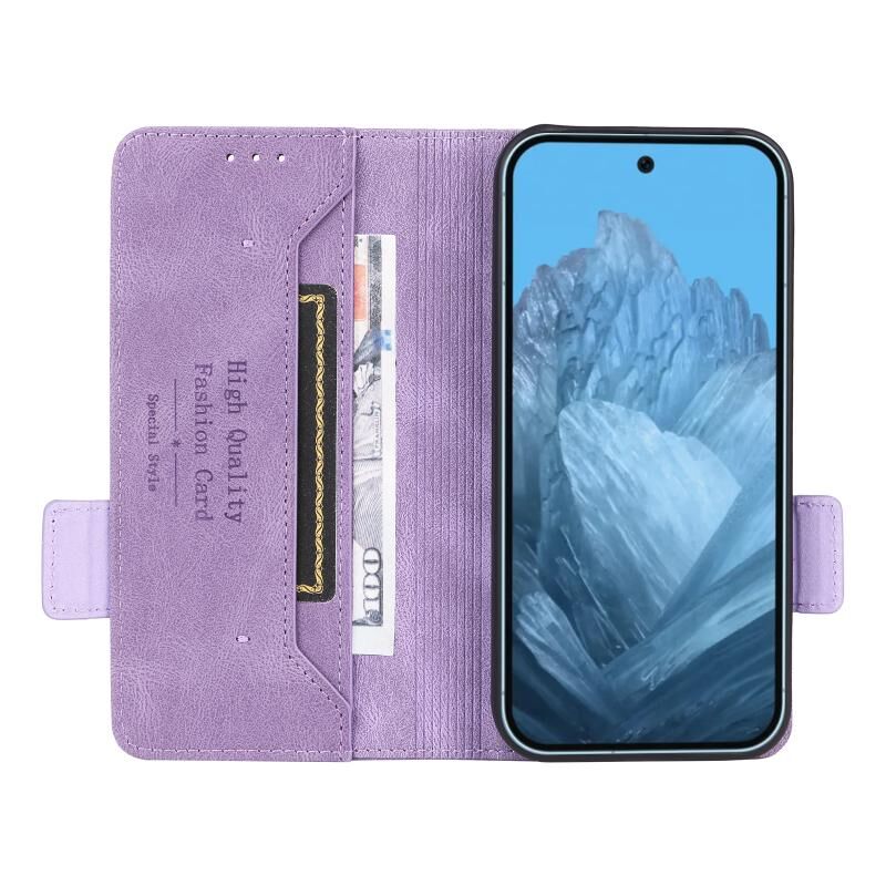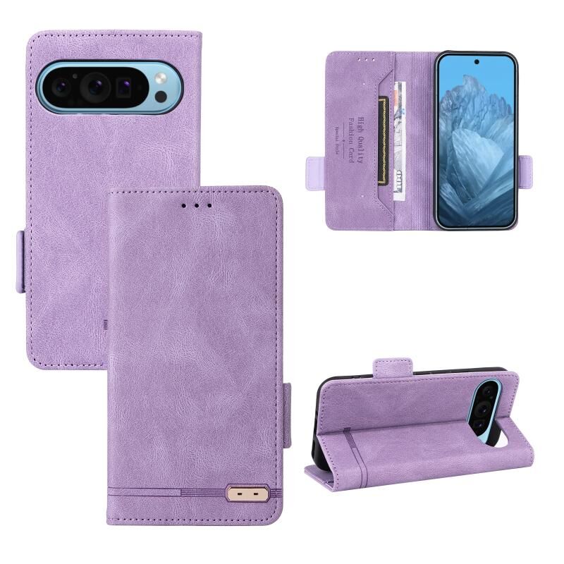 Για Google Pixel 9 Pro XL Μαγνητικό κούμπωμα Δερμάτινη θήκη τηλεφώνου (μωβ)
